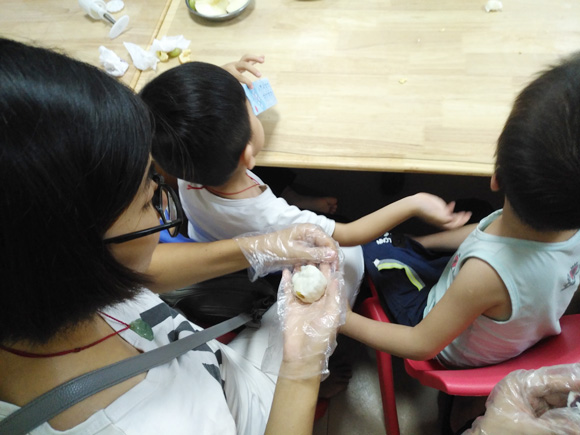 亲子做月饼 其乐融融-清远市清新区小太阳自闭症儿童训练中心
